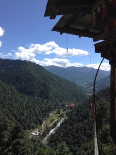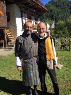 Mönche sieht man überall in Bhutan. Die Hälfte jedes Regierungsgebäudes wird gewöhnlich von Beamten benützt, die andere Hälfte von Mönchen. Sie sind nicht butan 7 butan 8 butan 9wahlberechtigt, scheinen aber die öffentliche Meinung stark zu beeinflussen. Der Schulunterricht beginnt jeden Morgen mit Meditation. Klöster und Tempel sind voll von Menschen aller Altersstufen, die Niederwerfungen verrichten und Gebetsmühlen drehen. Die Niederwerfungen bei unseren vielen Tempelbesuchen wurden mir nach und nach beschwerlich, lohnten sich aber, da sie wirklich das Bewusstsein klären und (in mehr als einem Sinn) das Herz erwärmen. Das Drehen unzähliger Gebetsmühlen war mir eine reine Freude – schon der Gedanke an die Scharen andächtiger Menschen, die sie vor mir drehten seit Jahrhunderten. Auch an Pujas (Opfern) durften wir teilnehmen und Sakraltänze sehen. Eine ganz besonders festliche Tanzzeremonie fand gleich am Abend unserer Ankunft statt im Haupttempel der Hauptstatt Thimphu. Andere schöne Tänze sahen wir bei der Eröffnung des GNH Zentrums in Chokhor, dem Höhepunkt und Abschluß unserer Reise. Dieses neue Zentrum liegt hoch in einem Talschluß des Himalayas, von wo aus nur noch Bergpfade zur Grenze Tibets hinaufführen. Wir verbrachten dort die Nacht in einem Bauernhof und hörten, dass Leute aus dem Dorf jedes Jahr auf Pilgerfahrt gehen zur Höhle Milarepas in Tibet. Dabei müssen sie (illegal) die 6,000 m hohen Grenzpässe überschreiten. Im neuen GNH Zentrum werden Kurse und andere Veranstaltungen für Gruppen aus allen Teilen des Landes stattfinden. Es liegt nahe der geographischen Mitte Bhutans. Diese zentrale Lage ist natürlich praktisch, unterstreicht aber zugleich die Bedeutung des Grundrechts auf Glück und seiner Verwirklichung.
