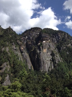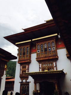 Mit dem Wetter hatten wir Glück. Die durchnittliche Seehöhe von fast 3,000 m konnte ich recht gut vertragen. Wir fuhren durch herrliche Wälder (80% von Bhutan ist bewaldet), sassen an reißenden Flüssen, deren klares Wildwasser von den Himalayagletschern kommt, kletterten zu Klöstern hinauf, die wie Schwalbennester an Bergwänden kleben und träumten hochgebauschten Wolkensegeln nach. Immer wieder freute ich mich am heimischen Baustil. Nicht nur Klöster, Tempel und Burgen, sondern auch die Bauernhäuser sind bis in die kleinste Einzelheit mit Liebe gestaltet und drücken Selbstsicherheit und künstlerisches Feingefühl aus. Zum Glück stellt die allgemeingültige Bauordnung sicher, dass Neubauten sich gut dem traditionellen Stil einfügen; sogar in den Städten konnte ich das mit Freude feststellen. (Wie leicht wir doch Österreichs Schönheit so behüten könnten, wenn auch bei uns Kulturbewusstsein statt Gewinnsucht maßgebend wäre.)
