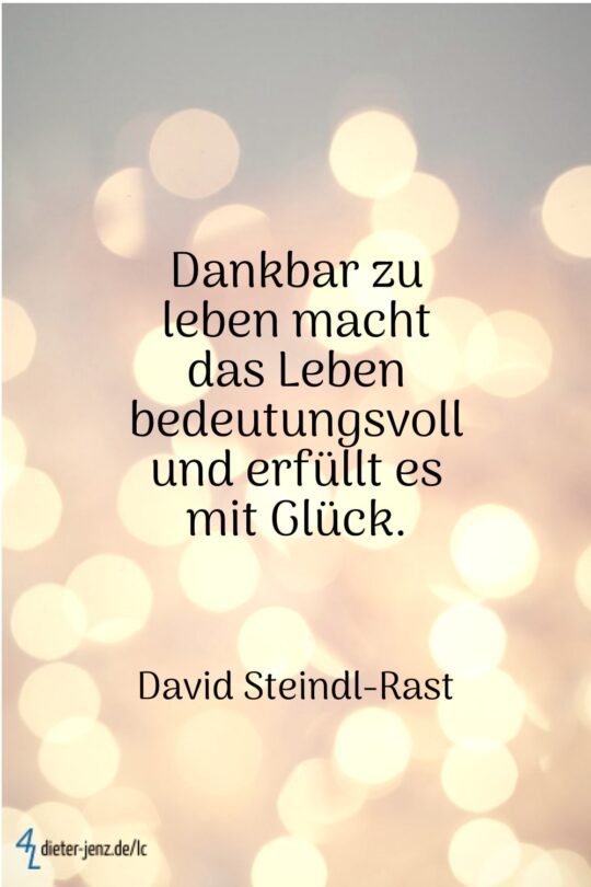 «Das Empfinden von Dankbarkeit zählt zu den am schnellsten wirksamen, wirkungsvollsten und positivsten geistigen Kräften, über die du verfügst» (Dieter Jenz)